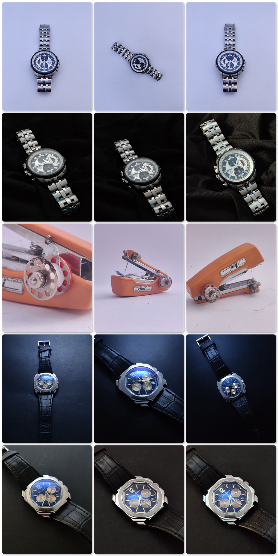 Before picking up the camera, I began by analyzing the product itself—a Bvlgari leather watch and an Amity timepiece. Both watches had strong design elements: metal accents, hints of gold, and black leather straps. This gave them a dual personality—rugged yet refined, masculine yet sophisticated. These qualities guided the overall aesthetic choices throughout the shoot.
