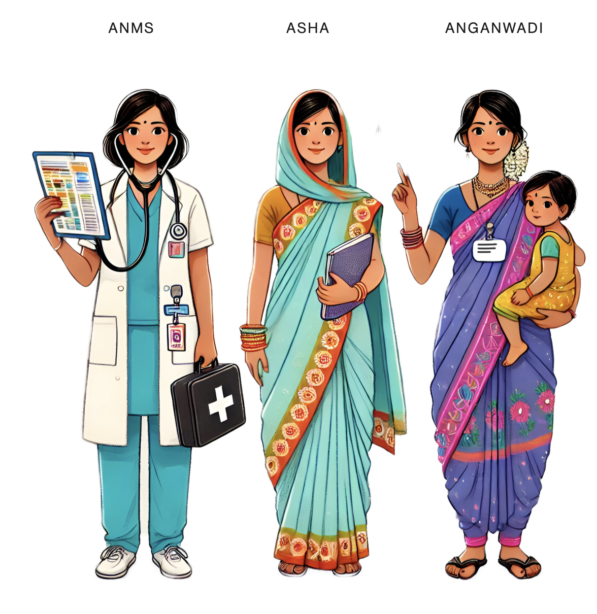- Multilingual and Simplified Interface: Integrated language-neutral cues and audio playback support to aid semi-trained users (like CHOs/ANMs), especially those facing training and language barriers.