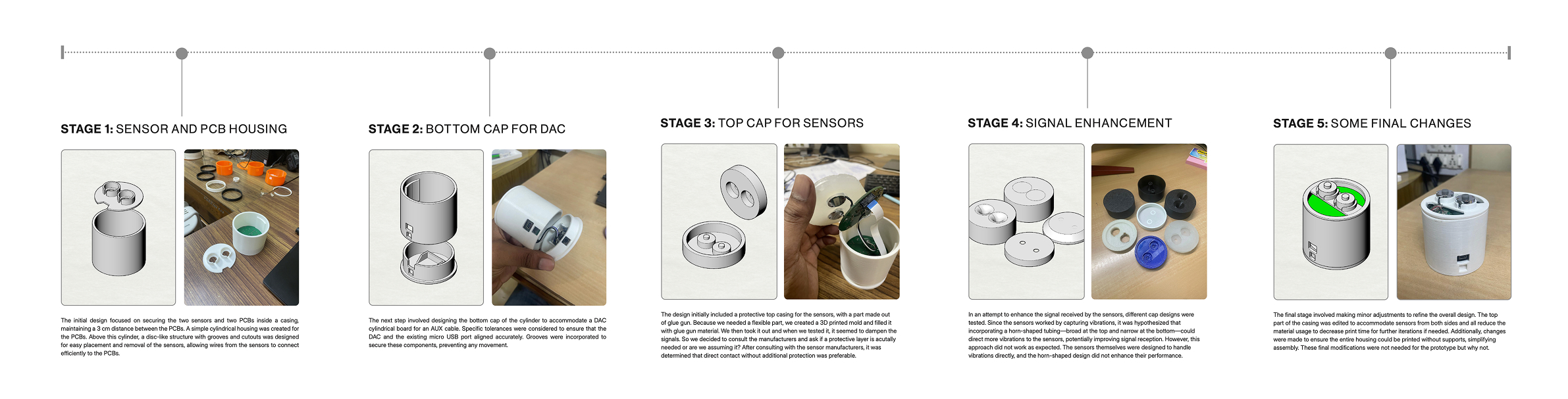 My early focus was on simplifying the assembly process, ensuring that the components could be put together quickly and reliably in both lab and production contexts. At the same time, I was exploring how to minimize environmental vibrations that the sensors were picking up without compromising their sensitivity to the vibrations from the chest. This balance became an important technical consideration in shaping the overall form and internal layout.