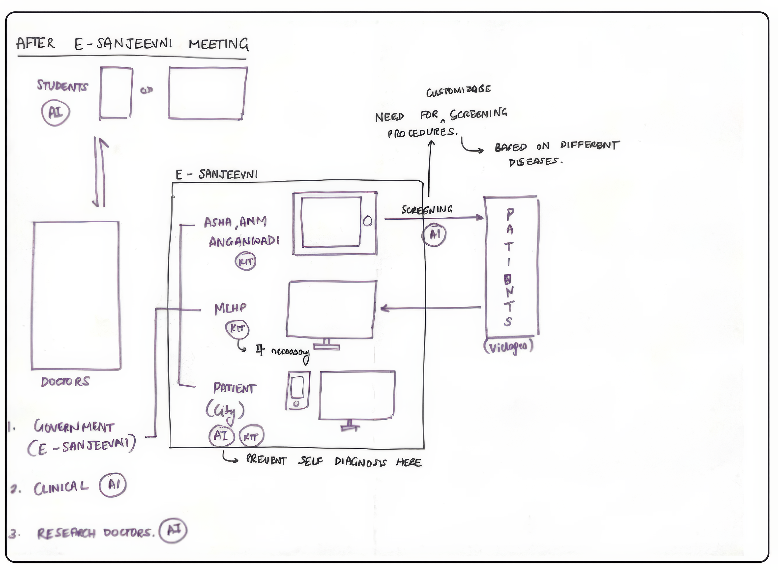 He also connected me to his team, who gave me access to the actual user flow of the eSanjeevani software. This helped me map out the system in which the stethoscope would operate, from patient registration to consultation and follow-up.