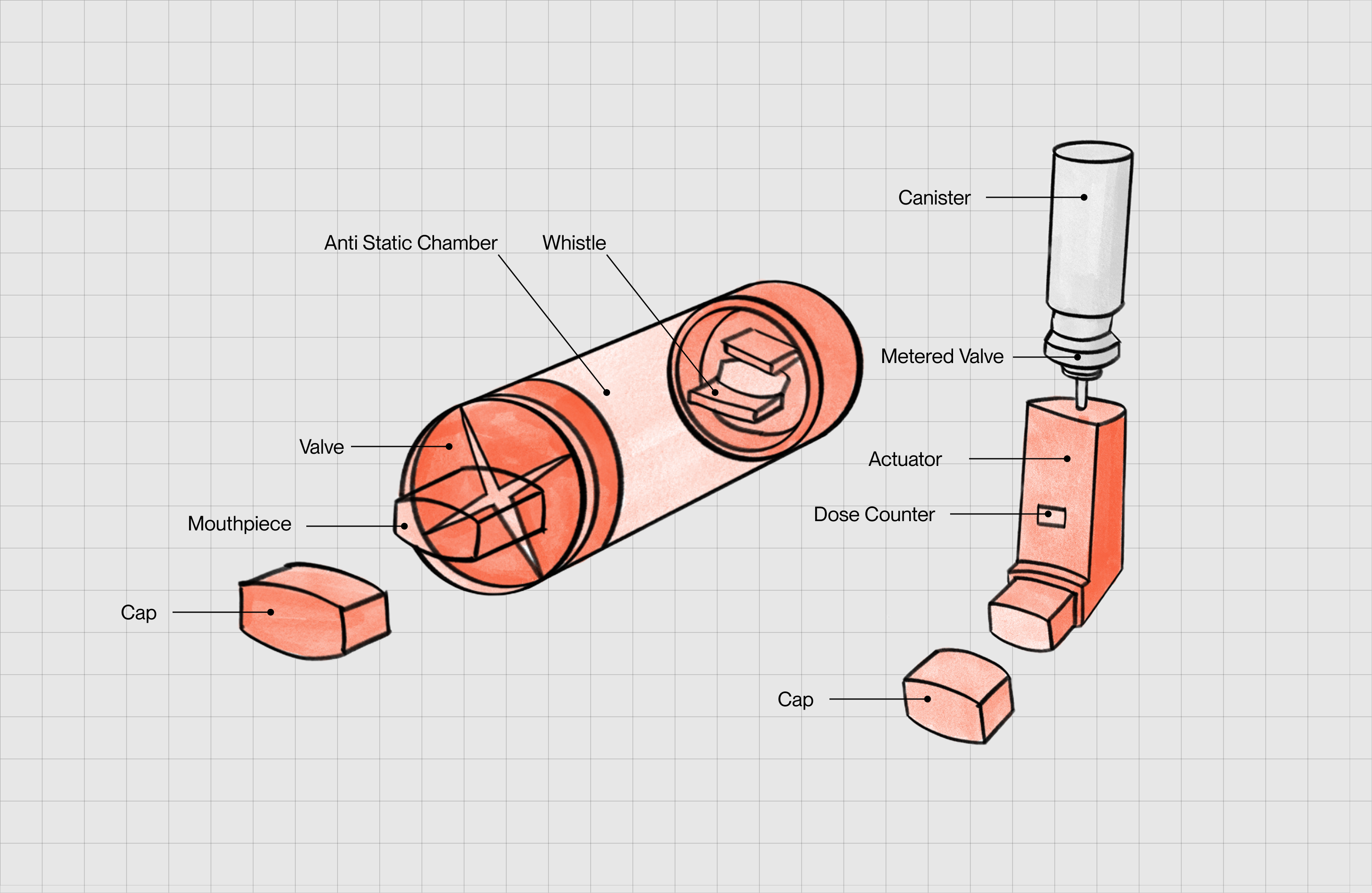 We wrote out correct technique in plain language and compared it with what we saw. Even when users owned a spacer, inconsistent instruction meant poor habits, multiple puffs per inhale, rushed breathing, or skipping the device entirely. That reframed our challenge as a behavior + communication problem as much as an industrial-design one.
