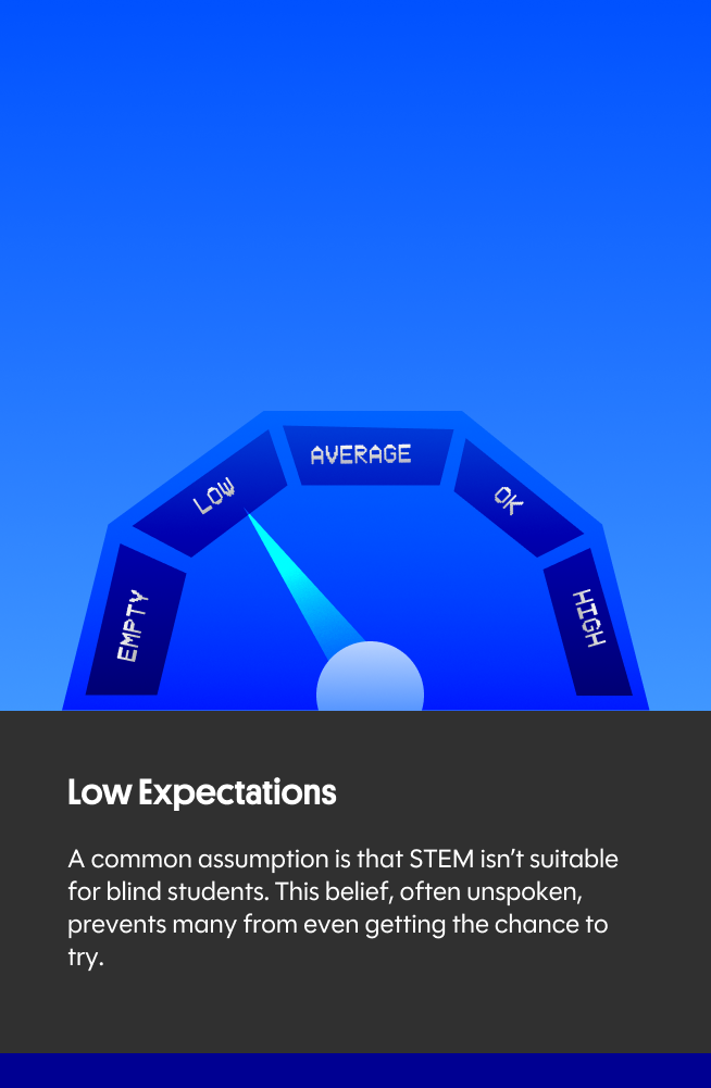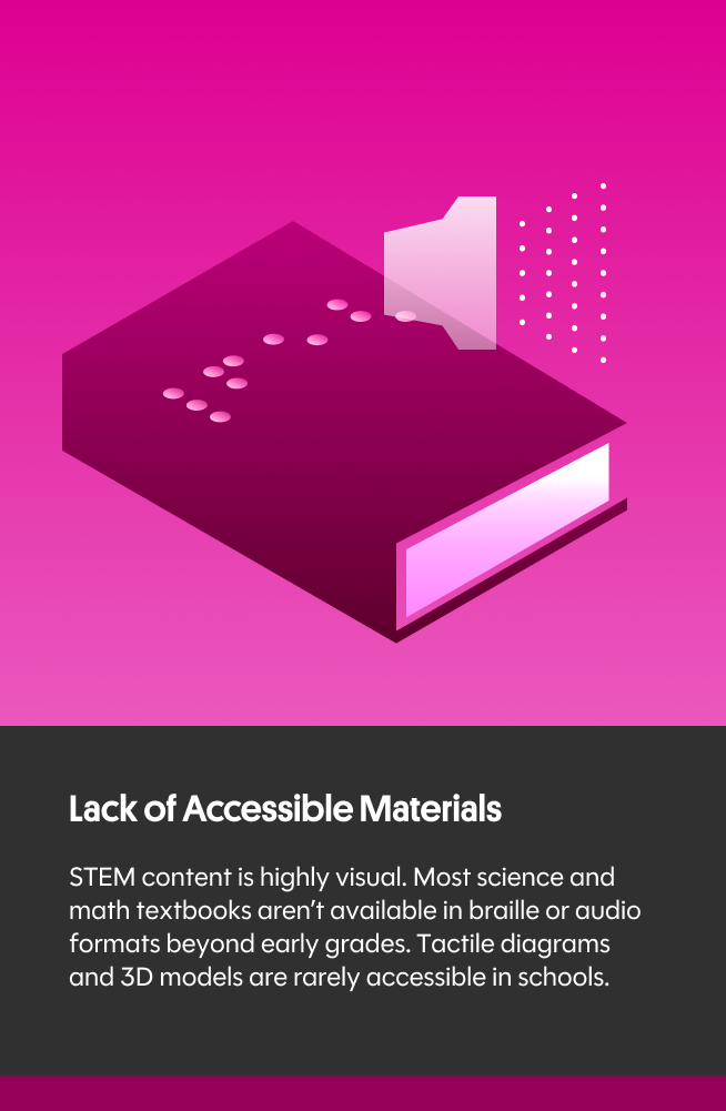 If we could create STEM kits and learning tools that made core concepts tactile, intuitive, and self-driven, students could practice and understand science without waiting for exams or formal validation. At the same time, these kits would serve teachers too, giving them practical ways to include visually impaired learners in everyday classrooms and keep them on equal footing with their peers.