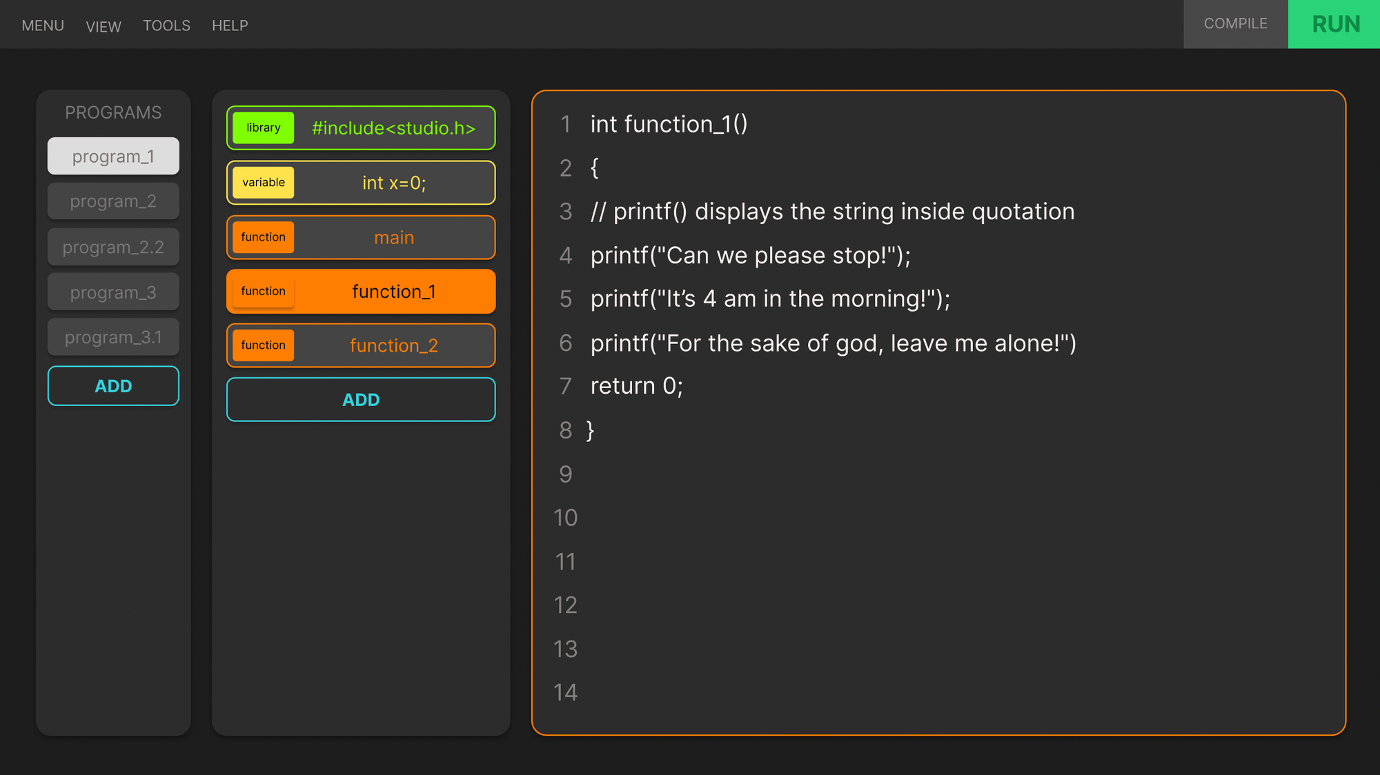 At the same time, we saw another barrier emerge: coding itself. Screen readers made it tedious to navigate and debug line-based code, slowing students down. To address this, we designed a conceptual accessible coding platform. We took inspiration from Scratch’s block-based approach but reimagined it for low-vision and blind learners with high-contrast interfaces, bold fonts, and modular blocks that could be pieced together logically. This allowed students to focus on programming concepts without being held back by the interface.